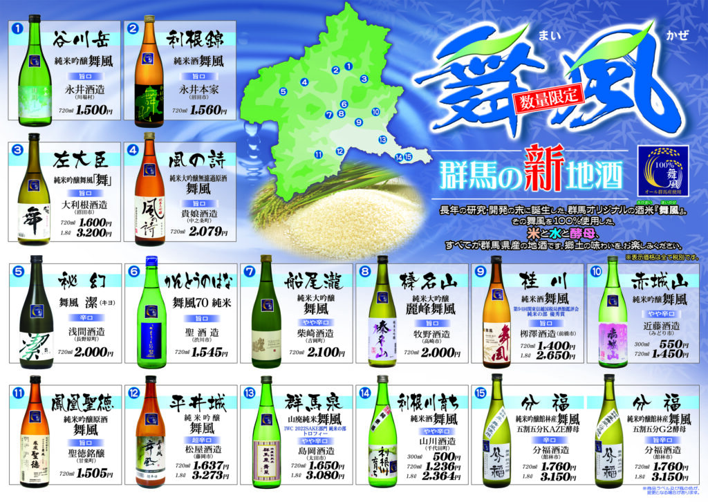 「舞風(まいかぜ)」は、群馬が誇る“オール群馬”の地酒ブランドです。
